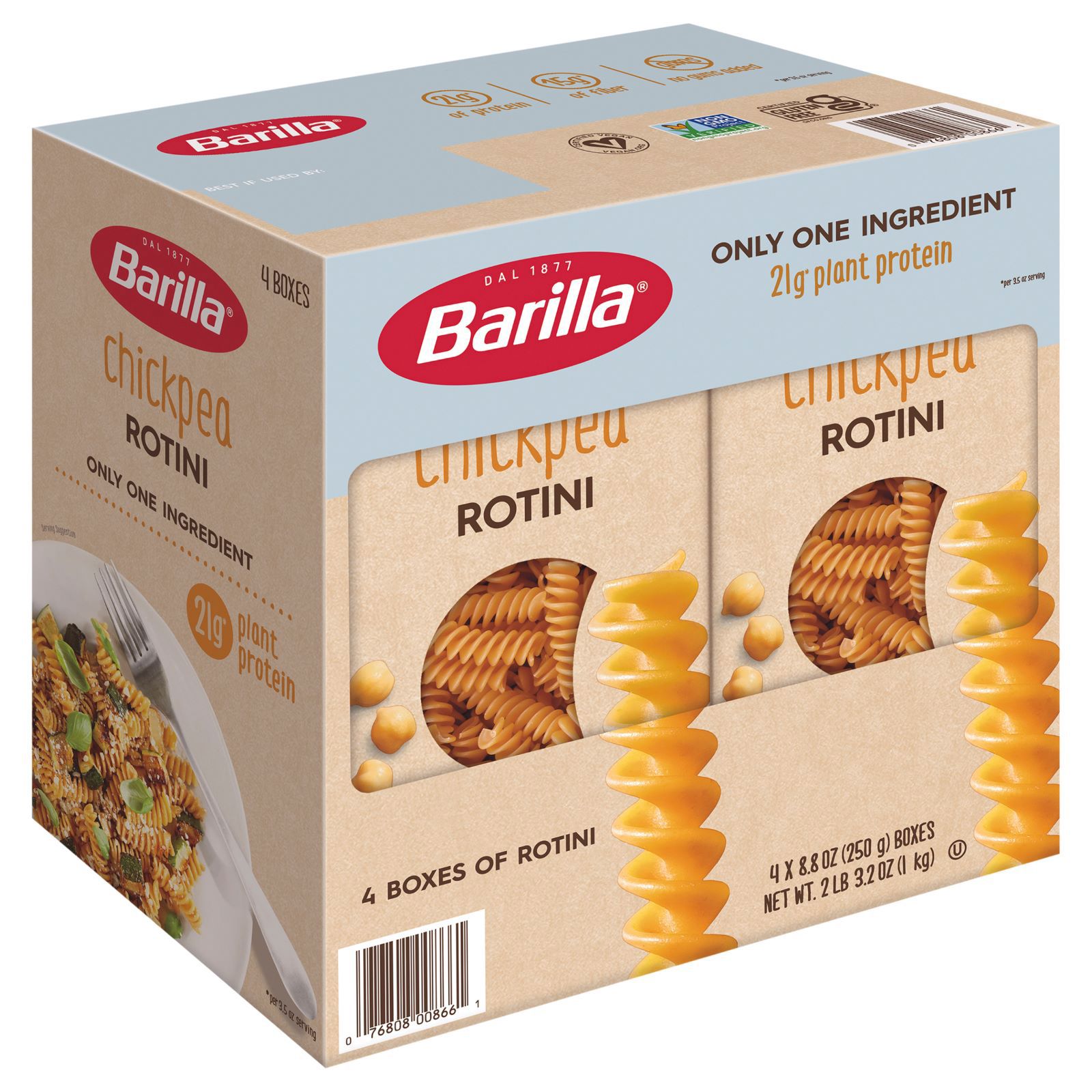 Cook pasta one minute less than package directions. The Barilla Chickpea Rotini pasta was delicious and definitely the star of the dish. 1 16 ounce can chickpeas rinsed and drained divided.